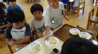 スイカはゆり組さんの帰りの集まりで切ってみると…