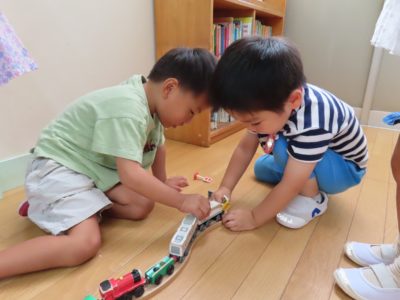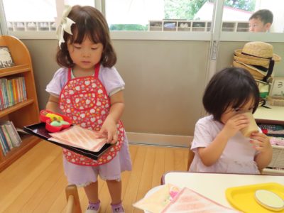 ゆり組さんが出て行ったあと「なんでかなあ」「きっと暑いからじゃない?」「そうだね」との会話。