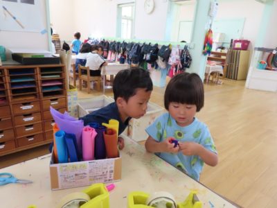 追加で準備の様子です。「おまつり」で使うもを引き続き作り準備しました。