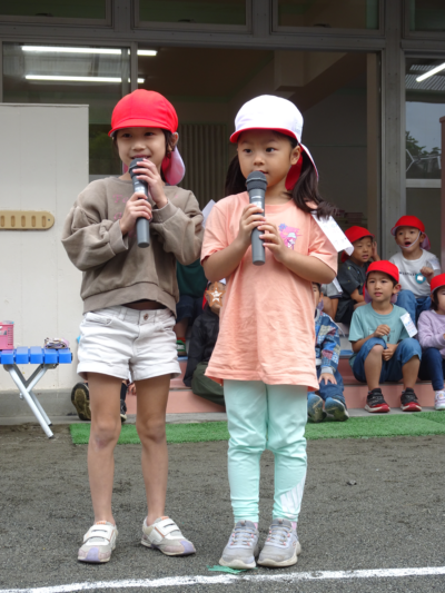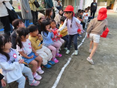道具の準備・アナウンス・ライン引き・ホイッスル、ゆり(年長)組さんが